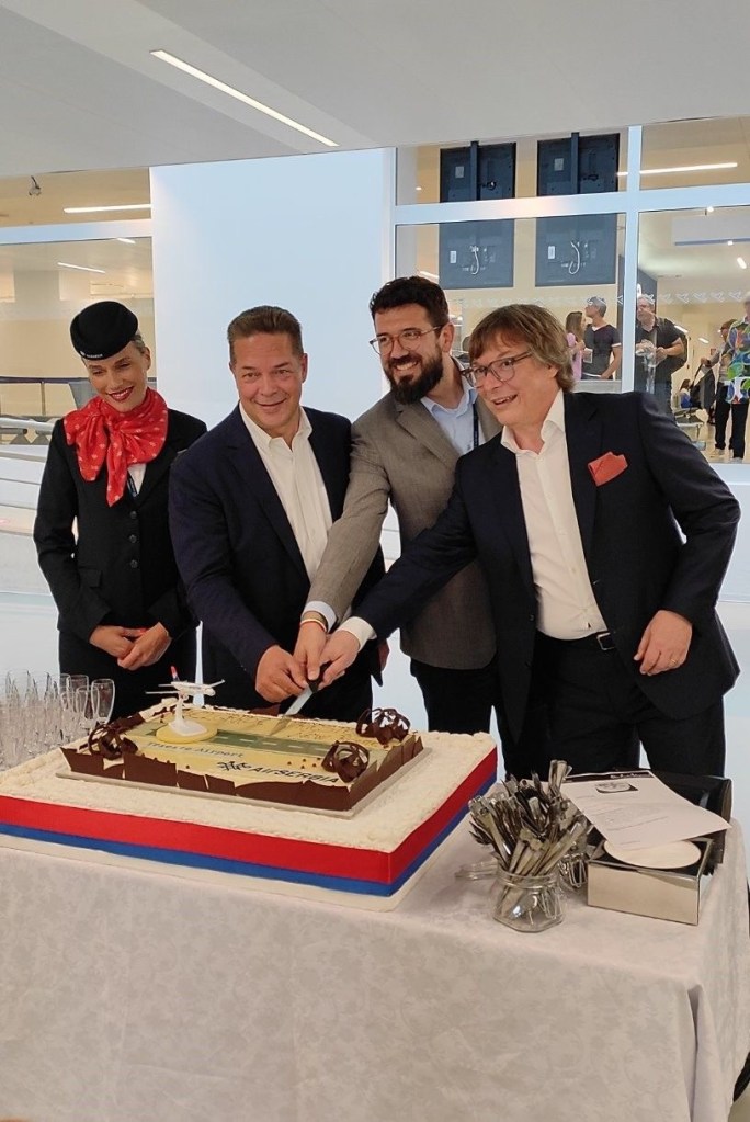Una grande torta e’ stata tagliata per celebrare il ritorno dopo 11 anni del volo diretto tra Belgrado e Trieste.