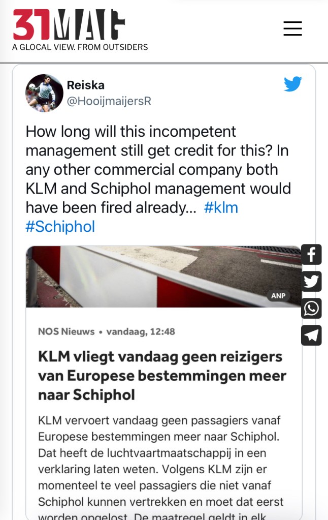 Ma su +31mag.NL, testata in lingua italiana ci sono questi sfoghi di passeggeri:
