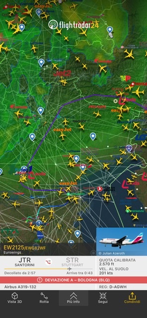 Senza categoria Eurowings : il volo Santorini – Stoccarda sta atterrando a Bologna Pubblicato da Italiavola il 5 giugno 2022 Questo volo Eurowings, per dovere di cronaca, pubblichiamo che sta atterrando a Bologna. Non e’ noto perché ’, anche lo sqwak e’ ordinario 2052. Le marche del velivolo sono D-AGWH. Condividi: Fai clic per condividere su Facebook (Si apre in una nuova finestra) Facebook Fai clic qui per condividere su LinkedIn (Si apre in una nuova finestra) LinkedIn Fai clic qui per condividere su Reddit (Si apre in una nuova finestra) Reddit Fai clic qui per condividere su Pinterest (Si apre in una nuova finestra) Pinterest Fai clic qui per condividere su Tumblr (Si apre in una nuova finestra) Tumblr Fai clic per condividere su X (Si apre in una nuova finestra) X Mi piace Caricamento... Correlati