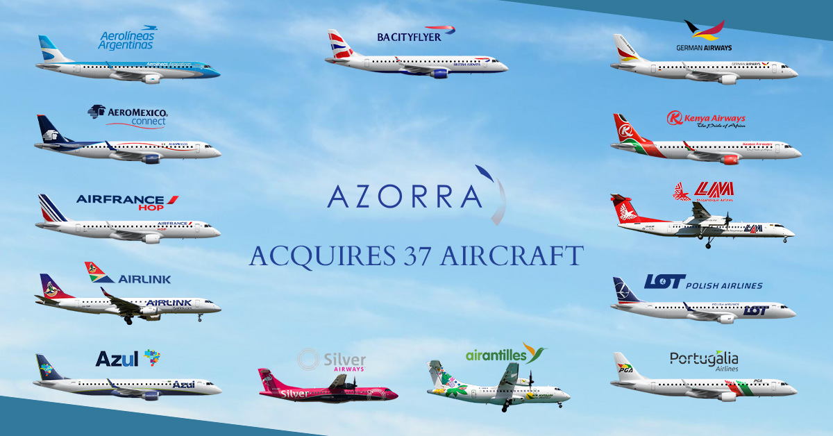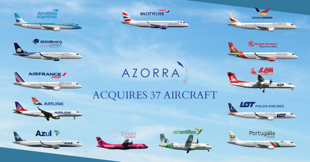 Azorra ha recentemente completato l’acquisizione di un portafoglio di 37 aeromobili precedentemente di proprietà di Nordic Aviation Capital (NAC). Il portafoglio comprende 29 Embraer E-Jet e sette turboelica ATR e Q400 noleggiati a 13 diverse compagnie aeree in tutto il mondo. Gli aerei sono finanziati da un gruppo di finanziatori guidato da BNP Paribas.
