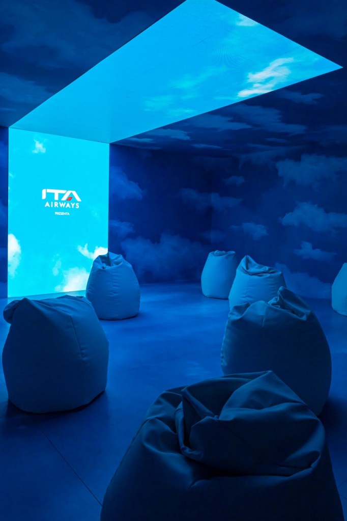 Lo spazio espositivo di ITA Airways a Milano è costruito per far vivere ai visitatori un viaggio ideale con eventi ed esperienze immersive: un cielo che atterra nel centro di Milano offrendo al pubblico una esperienza unica e irripetibile per far scoprire che, in fondo, il cielo è dentro ognuno di noi. Importante il focus sui nuovi interni e tutte le destinazioni del network ITA Airways attraverso uno spazio fortemente esperienziale.