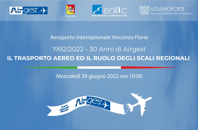 Mercoledì 29 giugno 2022 ore 10:00 Airgest, ha organizzato un incontro con stampa e autorità e aperto al pubblico, in occasione del trentennale di gestione dell’aeroporto internazionale Vincenzo Florio. Si terrà una tavola rotonda dal titolo “Il trasporto aereo ed il ruolo degli scali regionali” alla presenza del presidente della Regione Siciliana, Nello Musumeci, di autorità militari e civili. Ad aprire i lavori dell’incontro, moderato dal giornalista del Sole 24 Ore, Nino Amadore, sarà il presidente di Airgest, Salvatore Ombra.