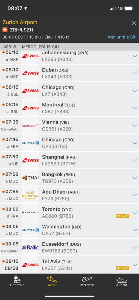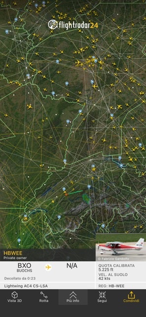 Il traffico attualmente e’ composto solo da aerei che volano localmente. Tutto il resto che di norma sorvola la Svizzera opera rotte diverse evitando spazio aereo elvetico.