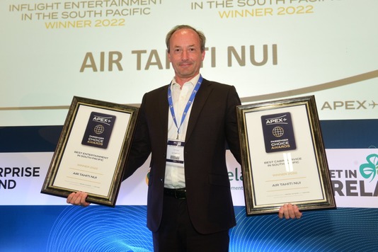 | Dopo aver vinto il premio per il Miglior Poltrona nel 2020, Air Tahiti Nui è stata nuovamente premiata agli APEX Passenger Choice Awards® 2022. Quest’anno la compagnia polinesiana ha ricevuto due premi regionali: Miglior Intrattenimento e Miglior Servizio di Bordo nel Sud Pacifico. La cerimonia di premiazione si è svolta lo scorso mercoledì 8 giugno 2022 a Dublino.APEX Passenger Choice Awards®, in collaborazione con l’applicazione di viaggio TripIt® di Concur®, stila una classifica annuale fra circa 600 compagnie aeree. I passeggeri possono esprimere le loro opinioni valutando il comfort e la qualità dei servizi a bordo. Questi dati vengono utilizzati dall’Airline Passenger Experience Association (APEX) per classificare le migliori compagnie in ciascuna categoria e regione.La pandemia di COVID-19 ha reso le cose più complicate per le compagnie aeree. Nonostante la chiusura dei confini, che hanno danneggiato i programmi dei voli, e le restrizioni sanitarie a bordo e negli aeroporti, Air Tahiti Nui ha fatto del suo meglio per mantenere le operazioni, anche al picco della crisi, e contemporaneamente mantenere i suoi standard di servizio.Questi riconoscimenti sono un premio al duro lavoro che tutto lo staff di Air Tahiti Nui ha messo in campo per far sì che i suoi clienti rimanessero in contatto con i propri cari. Questo risultato ci dà ancora più coraggio e fiducia nel continuare a migliorare il nostro servizio e condividere la gioia di viaggiare. È con grande umiltà e la massima gratitudine che inviamo i più sinceri ringraziamenti ai nostri clienti e partner per il loro continuo supporto.La cerimonia di premiazione si è tenuta in Irlanda mercoledì 8 giugno 2022, in occasione di un doppio evento che ha riunito tutti i principali attori del settore: “l’APEX Content Market 2022” e il “Future Travel Experience EMEA/Ancillary/World Airport Retailing Summit”. |