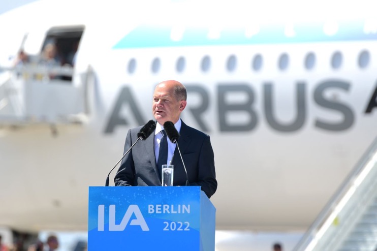 Nella foto il cancelliere tedesco Olaf Scholz ha tenuto il discorso di apertura dell’evento che si tiene in frequenza biennale, ma che manca dal 2018. L’edizione 2020 non si e’ tenuta a causa del Covid.