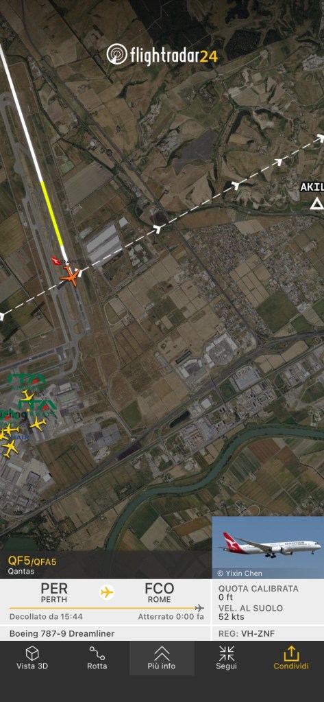 Alle 8:18 , pochi minuti fa ha posato le ruote a Roma Fiumicino per la prima volta dopo 19 anni il primo volo non stop dall’Australia all’Italia.