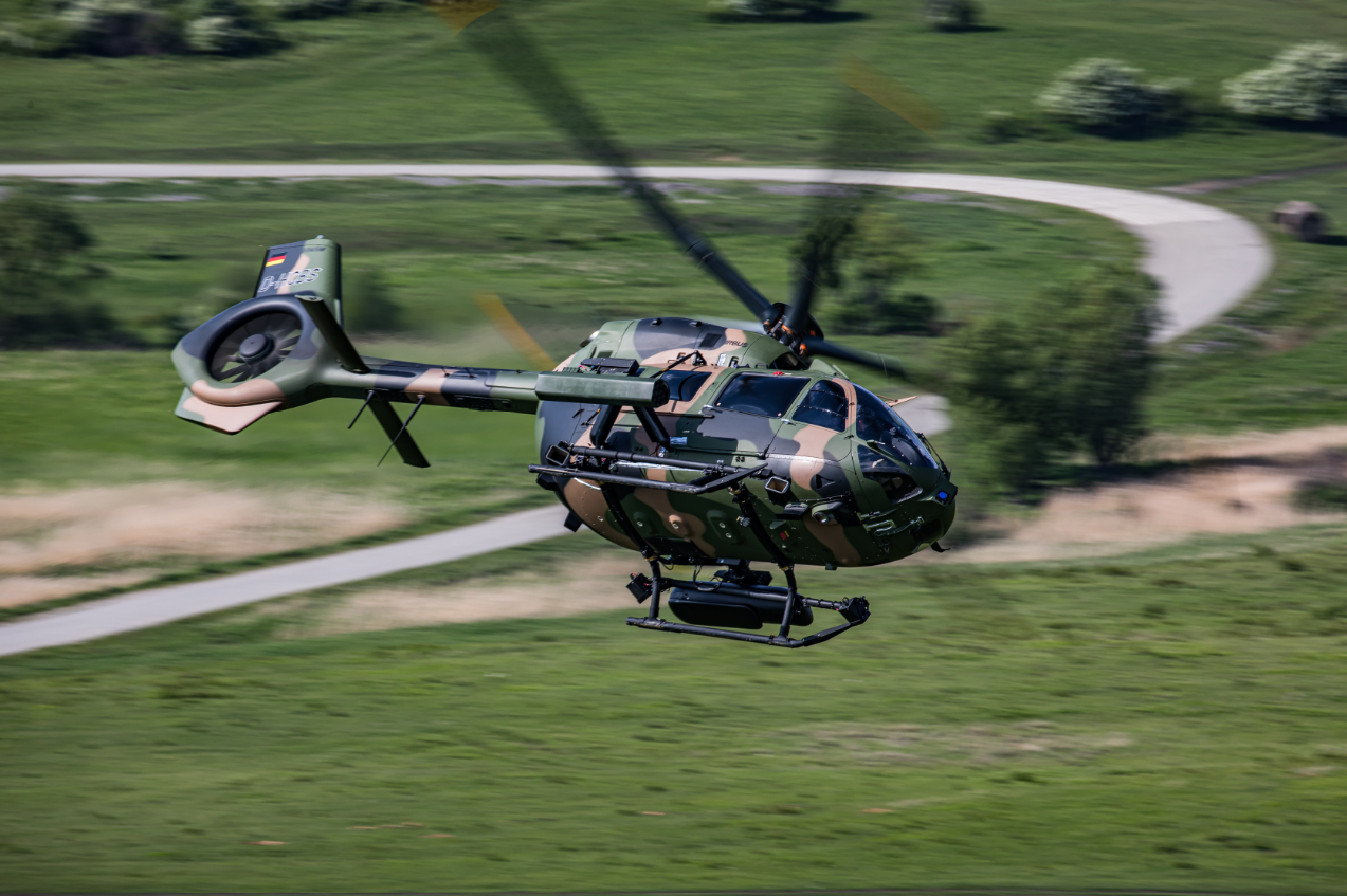 L’H145M è un elicottero militare multiruolo leggero. Derivato dall’H145 civile, l’ultima versione dell’H145M presenta un nuovo e innovativo rotore a cinque pale che aumenta il carico utile dell’elicottero di 150 kg. Il design del nuovo rotore principale senza cuscinetti semplifica anche le operazioni di manutenzione.