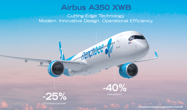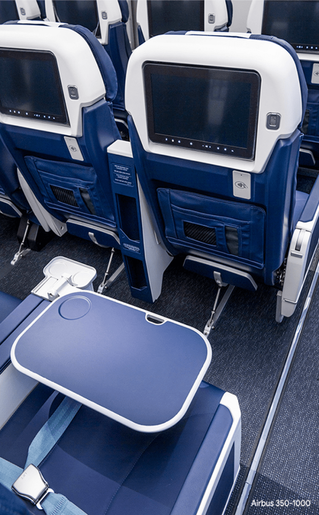 I voli saranno operati con aerei del tipo Airbus 350XWB. Questi nuovi velivoli aprticolarmente ecologici permettono -25% di emissioni di CO2 e 40% in meno di rumore.