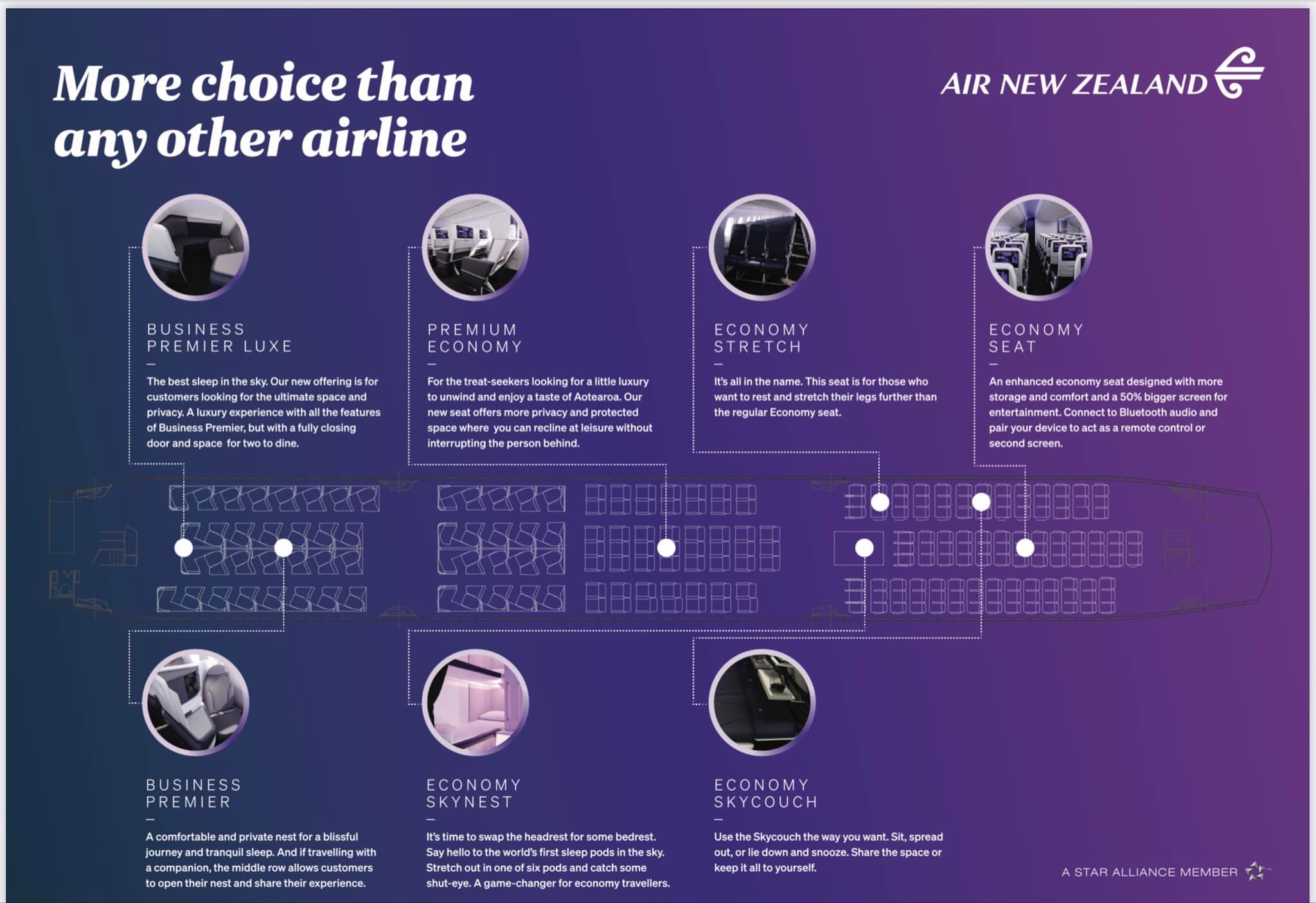 “La posizione della Nuova Zelanda ci pone in una posizione unica per guidare l’esperienza di viaggio a lunghissimo raggio. Abbiamo puntato su sonno, comfort e benessere perché sappiamo quanto sia importante per i nostri clienti arrivare ben riposati. Che si stiano dirigendo direttamente a una riunione o al loro primo hotspot festivo, vogliono iniziare subito.