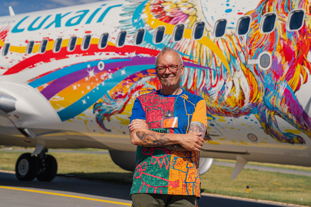 Nell’aprile 2022, una preselezione stabilita dai membri dello staff Luxair, ha permesso di selezionare undici progetti, poi a maggio il vincitore, Marco Weiten (sotto), è stato eletto da una giuria professionale di artisti ed esperti d’arte oltre che da la direzione di Luxair.