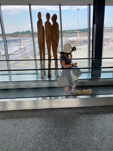 Carlo Guzzi, scultore propone sagome in metallo e legno dal titolo Impronte di umanità. Una poetica ben precisa, le figure rappresentano ciascuno di noi, e metaforicamente questi vuoti dati dal metallo e i pieni dati dal legno richiamano continuamente i passeggeri accompagnandoli in un percorso ideale che devono raggiungere.