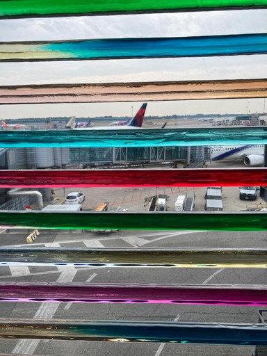 Jacopo Foggini con una installazione fatta ad hoc per Malpensa dal titolo Colibrì con un estruso di metacrilato che ricopre le finestre di Malpensa, gioca con la variazione dei colori in base alla luminosità data dalla luce che entra dalle finestre.