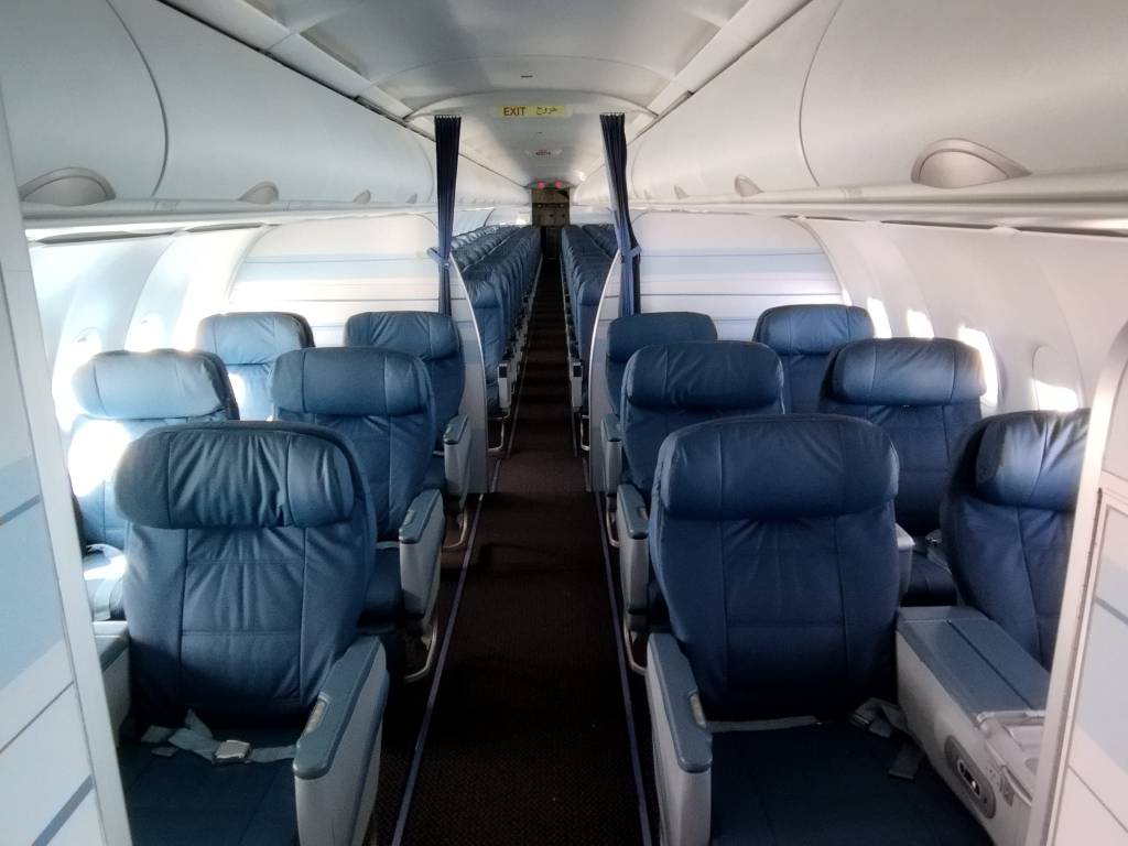 Infatti e’ a 132 posti in tutto, con 12 posti di first/business class con tutte le amenita’ come monitor , prese di corrente e le poltrone sono chiaramente del tipo sleeperette. L’abreast e’ 2-2.