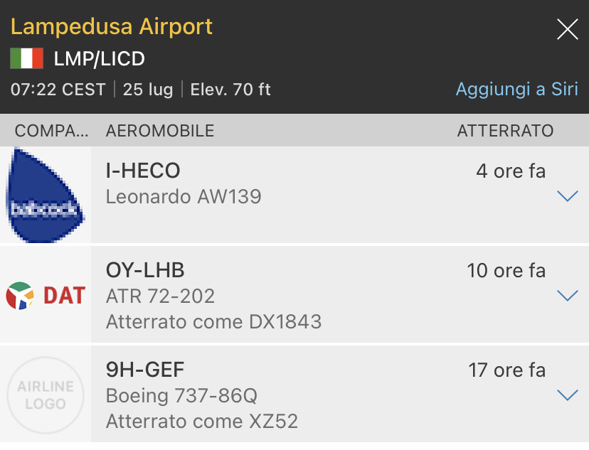 Da 17 ore – secondo Flightradar24 – e’ fermo a Lampedusa il Boeing 737-86Q 9H-GEF della compagnia aerea italiana AeroItalia.