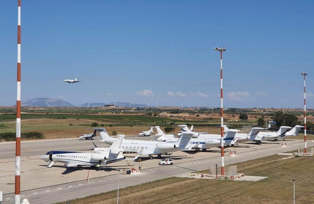 A Trapani una parte del piazzale sta ospitando una serie di corporate jet convenuti in Sicilia per un evento di Google che di terra’ in un noto e lussuoso resort della costa agrigentina.