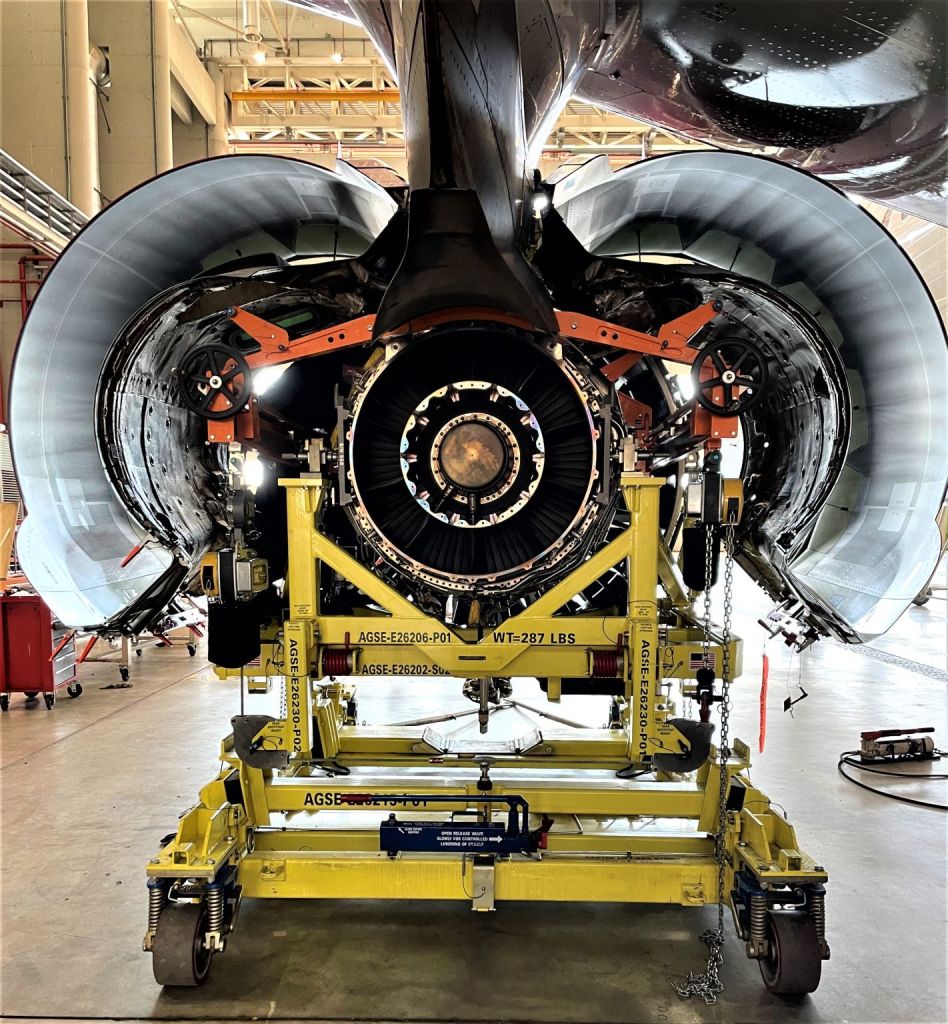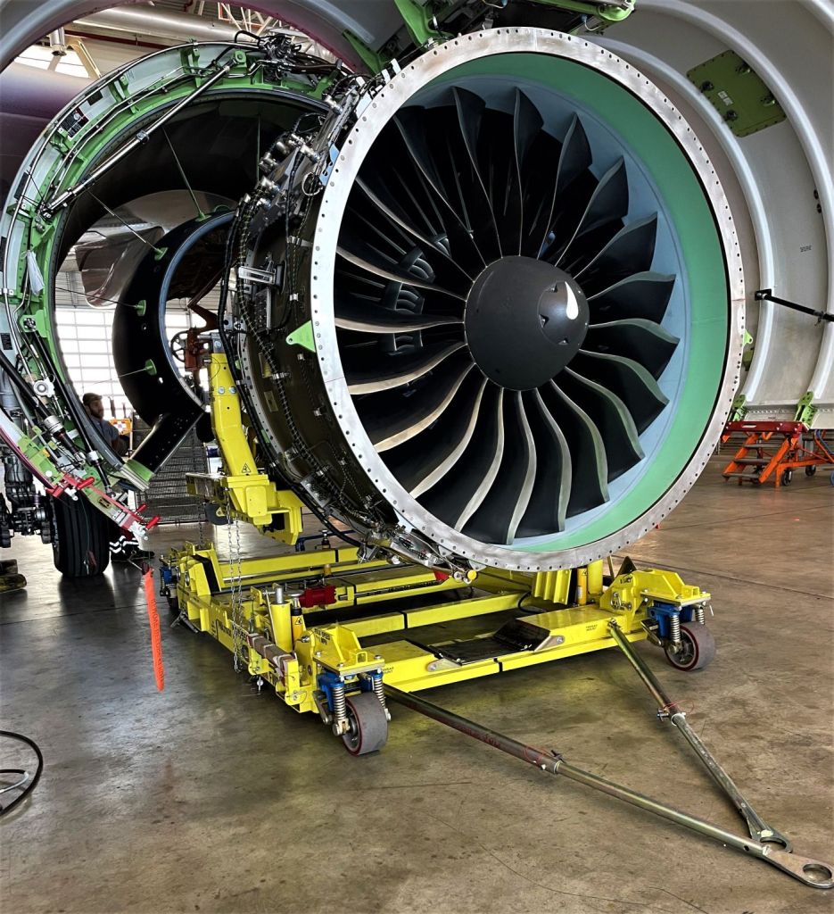 Nella foto c’è un propulsore Pratt & Whitney PW1100, installato di norma a bordo di un Airbus 320famly o Airbus 220 e che è stato rimosso e sostituito da un altro similare presso la Lufthansa Technik Milan S.r.l. di Milano Malpensa.