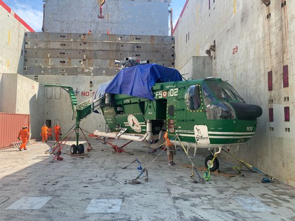 L’elicottero è della Protezione Civile e sarà impiegato per combattere gli incendi. La sua mole permette di trasportare grosse quantità di liquidi per lo spegnimento dei roghi.
