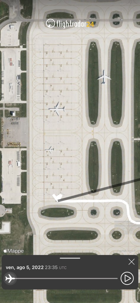 Aggiornamento: da FR24 pare che l’aereo abbia utilizzato una via per il rullaggio incompatibile forse con il suo wingspan.