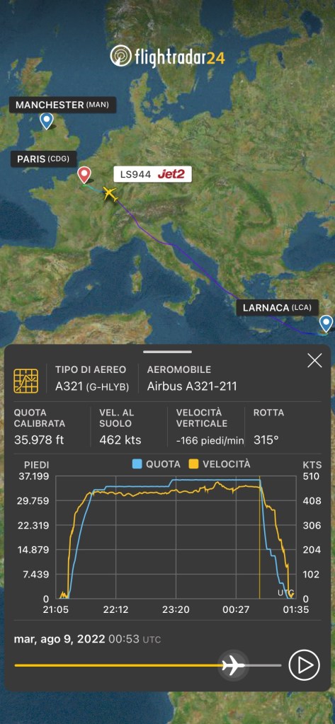 Il fatto e’ accaduto tra l’8 e il 9 agosto scorso al volo . LS944 operato dal l’aeromobile A321-200 G-HLYB. L’aereo ha iniziato la discesa sulla Francia per Parigi CDG dalla quota di FL370. L’atterraggio e’ avvenuto alle 03:26 del 9 agosto a una mezzoretta dall’inizio della discesa.