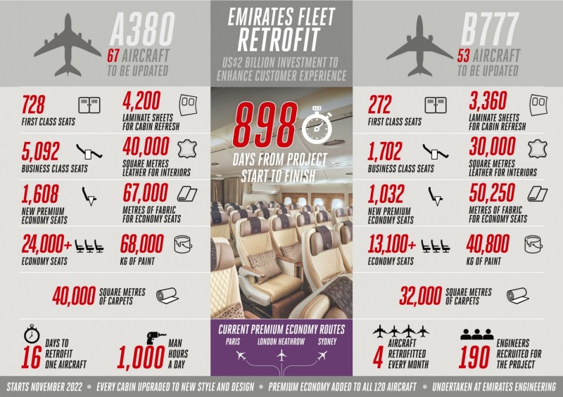 Emirates intraprende il più grande progetto di retrofit della flotta conosciuto come parte di un investimento multimiliardario per migliorare l’esperienza del cliente
