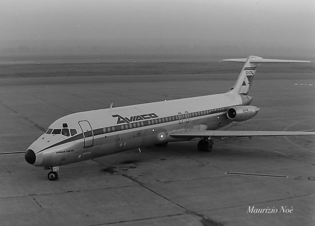 Nella foto di Maurizio Noe’ c’è’ EC-CTR, msn 47702 e ln 817. Ha fatto il primo volo il 5.3.1976 e andò in servizio l’1.5.1976. A quell’epoca a vederlo qualcuno poteva pensare che avesse una decina di anni, invece era più giovane dell’ultimo DC-9/32 consegnato a ATI nel 1975 e sfortunatamente perso velocemente con l’incidente a Capoterra.