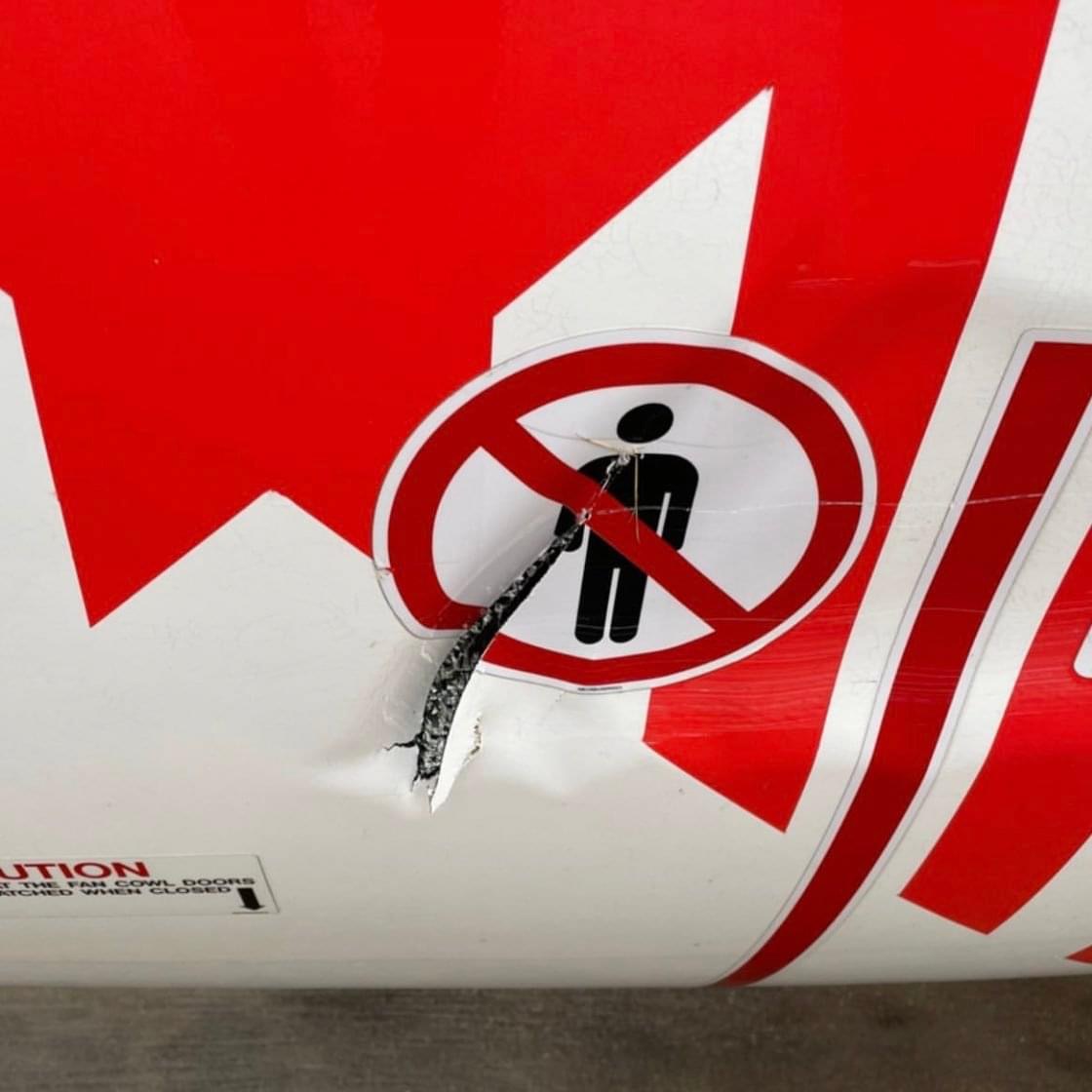 Una wingtip, quella sinistra e’ stata seriamente danneggiata, come anche il taglio occorso a una porzione della capottatura di un propulsore.