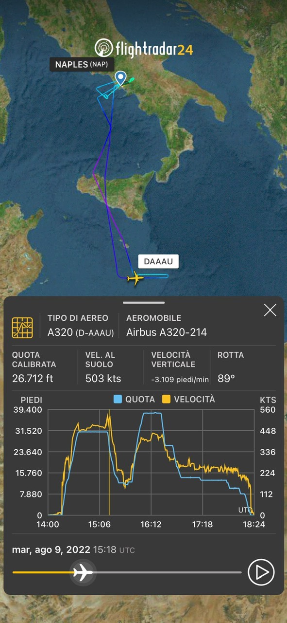 Questo A320-200 D-AAAU di BOC e’ a Napoli e il 9 agosto ha effettuato un volo prova.