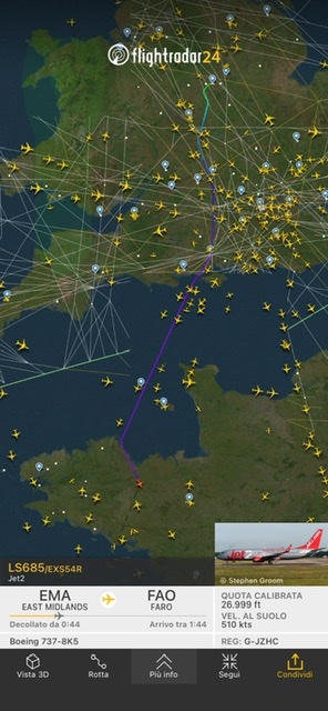 Il B737/800 G-JZHC era decollato quasi un oretta fa.