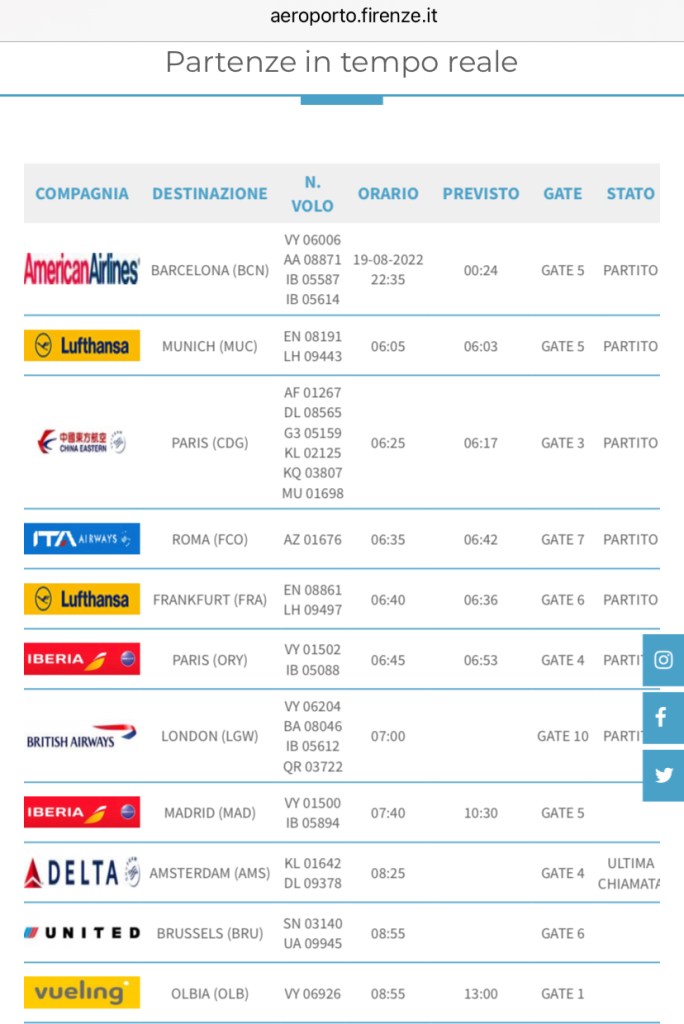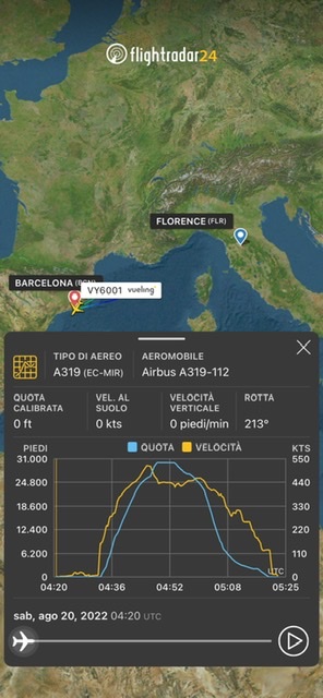 compagnie aeree Vueling : rientra a Barcellona il volo per Firenze. Quattro ore di ritardo per il Firenze-Olbia Pubblicato da Italiavola il 20 agosto 2022 A una mezzoretta dal decollo questo A319-112 EC-MIR della Vueling e’ rientrato a Barcellona da dove era partito come VY6005 per Firenze. Il successivo volo per Olbia VY6926 da Firenze delle 08:55 e’ già stato ritardato alle 13. Condividi: Fai clic per condividere su Facebook (Si apre in una nuova finestra) Facebook Fai clic qui per condividere su LinkedIn (Si apre in una nuova finestra) LinkedIn Fai clic qui per condividere su Reddit (Si apre in una nuova finestra) Reddit Fai clic qui per condividere su Pinterest (Si apre in una nuova finestra) Pinterest Fai clic qui per condividere su Tumblr (Si apre in una nuova finestra) Tumblr Fai clic per condividere su X (Si apre in una nuova finestra) X Mi piace Caricamento... Correlati