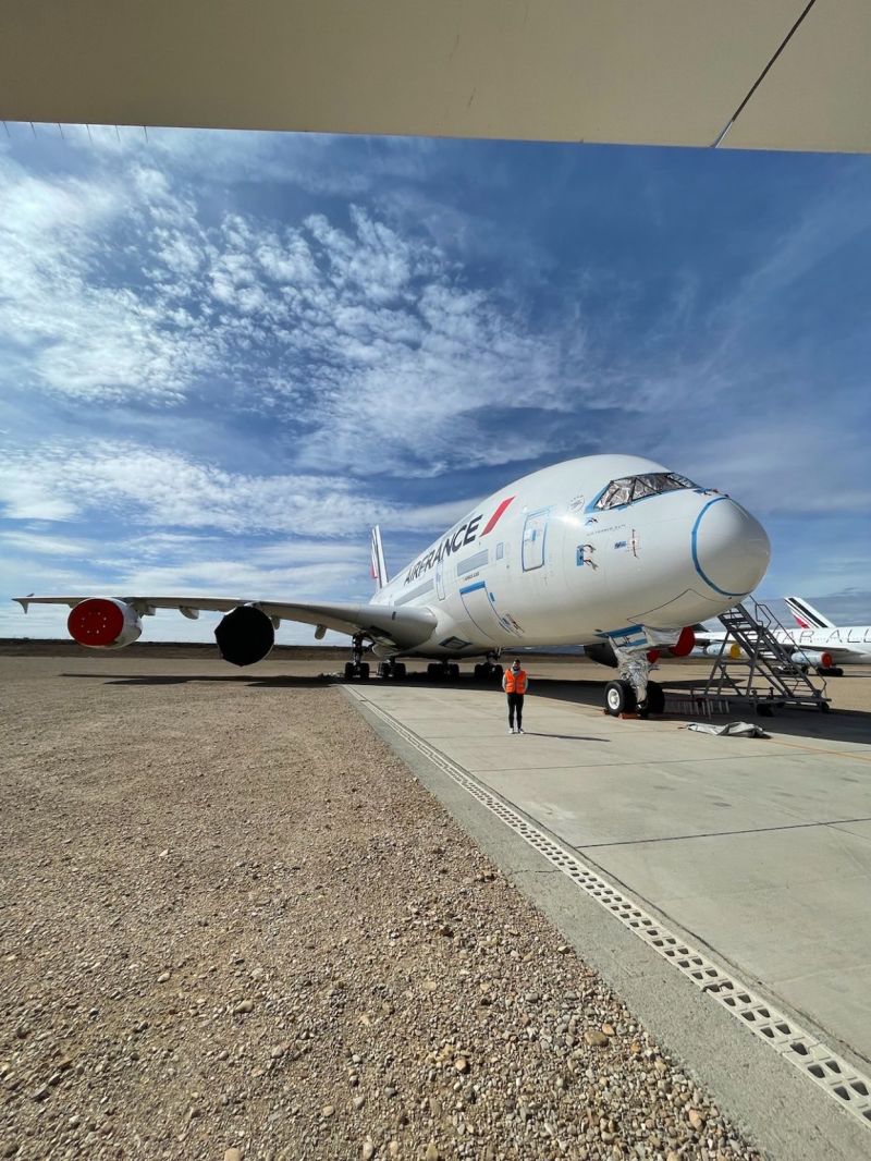 Questo è un GRANDE affare. Siamo lieti di annunciare l’acquisto di un A380-800 con motori GP7200. Questo uccellino ha meno di 12 anni e i motori non hanno mai visto le officine della ditta costruttrice per riparazione. Lo smontaggio inizia ora. Etienne Gombeaud nella foto per dimostrarne l dimensione del velivolo