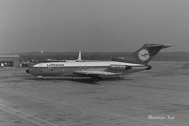 La foto e’ ante luglio 1974 perché da quella data l’aereo da Lufthansa passo’ a Air Finance International come N90557 nella livrea del vettore tedesco senza titoli perché restituito e posto in storage. L’aereo fu consegnato al vettore tedesco il 24-2-1966 con la registrazione D-ABIY.