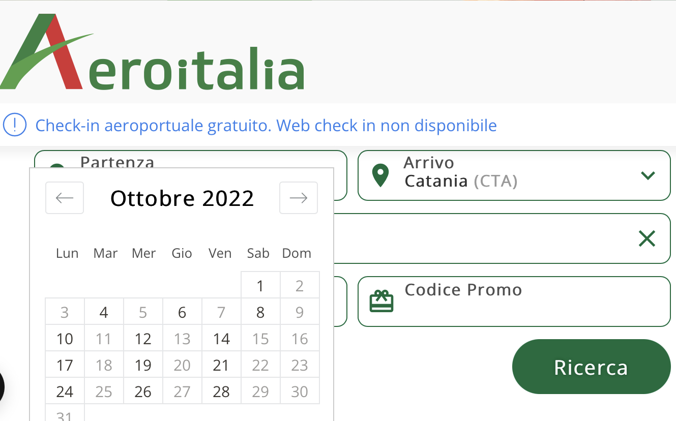 dal 10 ottobre e fino al 28 dello stesso mese i voli saranno estesi e operati il lunedì / mercoledi / venerdi
