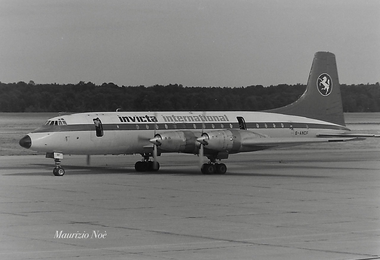L’aereo fotografato da Maurizio Noe’ era stato costruito nel tardo 1958 e consegnato l’anno dopo al vettore argentino Transcontinental il 16/12/1969 come LV-PPJ e poi passo’ a LV-GJB. Poi British Eagle, Monarch e nel febbraio 1976 ando’ in Kenya alla African Cargo Airways come 5Y-AZP, ma il suo periodo fu breve perché passo’ alla Monarch e quindi Invicta Air Cargo.