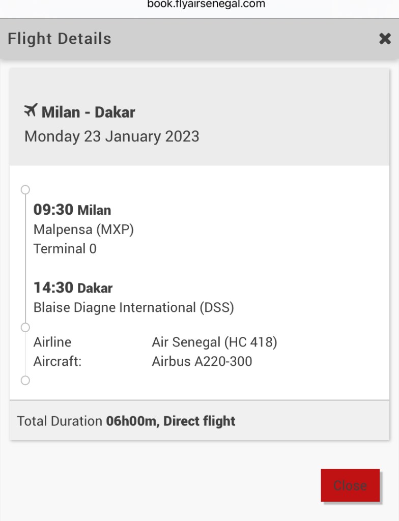 La Air Senegal dal prossimo mese di gennaio 2023 sostituirà’ il velivolo sulla rotta verso l’Italia tra Dakar e Milano Malpensa.