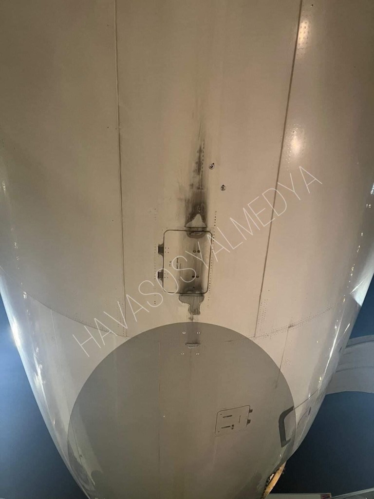Questo A330-300 TC-JOG della Turkish Airlines nella foto di HavaSosyalMedya ha toccato la pista in decollo con la parte posteriore inferiore della fusoliera dell’aereo. Il termine spesso utilizzato e’ tail-strike.