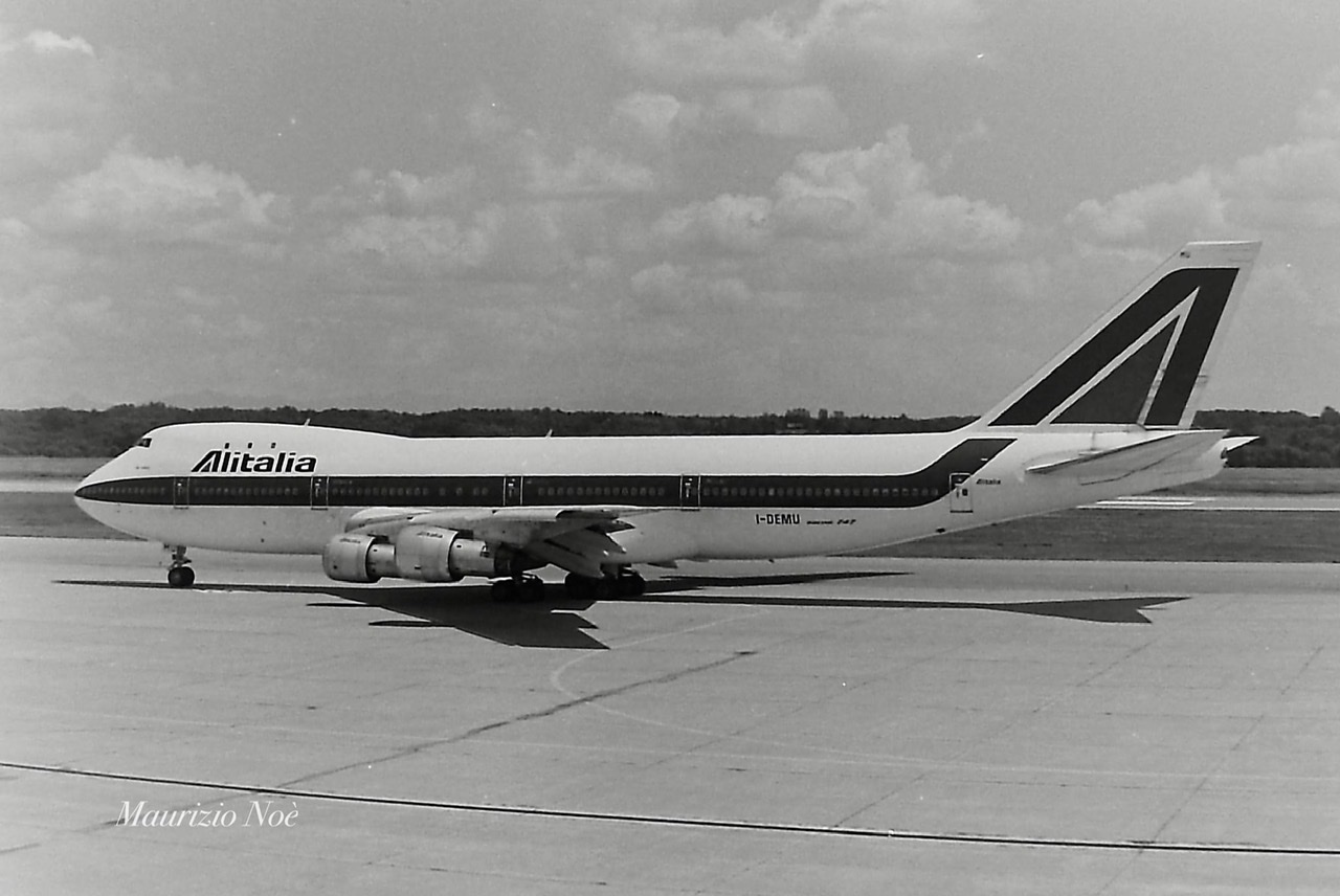 E’ un Boeing 747-243B Alitalia quello nella foto di Maurizio Noe’ . E’ a Milano Malpensa, il quarto B747 consegnato della prima commessa. Gli fu attribuito il nome di Geo Chavez.