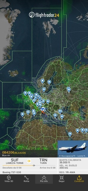 Solo un volo e’ al momento operante e’ un Lamezia – Torino operato dal B737-530 YR-AMA.