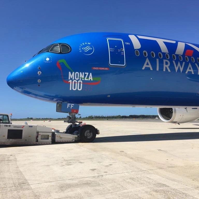Nella foto di oggi, scattata da ITA Airways prima del decollo da Roma Fiumicino per il display su Monza , l’aereo e’ stato ribattezzato a Enzo Ferrari l’A350-900 EI-IFF, probabilmente lo sarà solo per oggi.