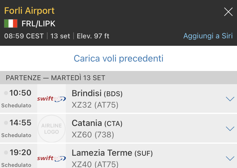 I due voli di oggi da Forlì per Brindisi e Lamezia Terme della AeroItalia saranno operato con un ATR72/500 in ACMI da SwiftAir con registrazione EC-KVI.