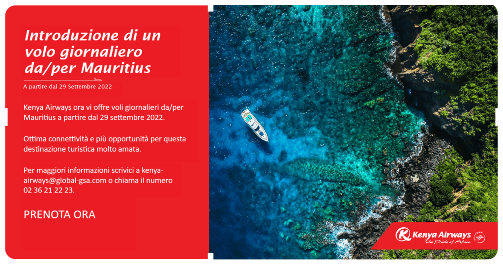 compagnie aeree Kenya Airways è giornaliera su Mauritius Pubblicato da Italiavola il 21 settembre 2022 Nuovo volo giornaliero per MauritiusA partire dal 29 Settembre 2022, Kenya Airways introduce un nuovo volo giornaliero da/per Mauritius. Ottima connettività e più opportunità per questa destinazione turistica molto amata. Condividi: Fai clic per condividere su Facebook (Si apre in una nuova finestra) Facebook Fai clic qui per condividere su LinkedIn (Si apre in una nuova finestra) LinkedIn Fai clic qui per condividere su Reddit (Si apre in una nuova finestra) Reddit Fai clic qui per condividere su Pinterest (Si apre in una nuova finestra) Pinterest Fai clic qui per condividere su Tumblr (Si apre in una nuova finestra) Tumblr Fai clic per condividere su X (Si apre in una nuova finestra) X Mi piace Caricamento... Correlati
