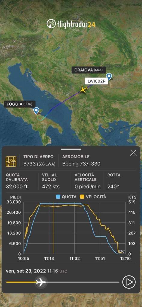 Zakynthos, il Boeing 737-330 SX-LWA è giunto quest’oggi a Foggia proveniente da Craiova.