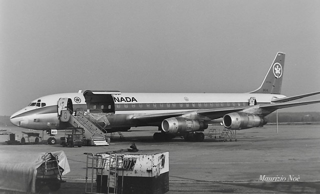 La foto e’ di Maurizio Noe’ a Milano Malpensa di questo DC-8/43CF di Air Canada prima ancora che aggiungesse anche “Cargo”, anche se chiaramente lo era già. Il suo carico utile era 255,4 mc o 42080 Kg. L’autonomia era di 6250 miglia nautiche ovvero 11575 km.