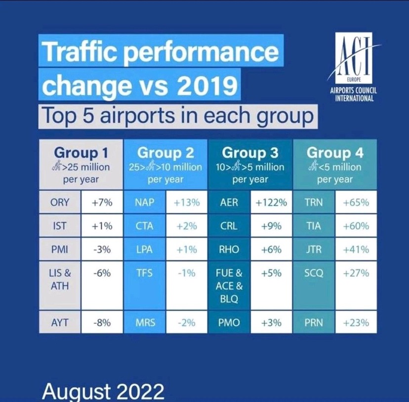 ACI Europe ha compilato questa tabella e riporta gli aeroporti europei con maggior crescita.