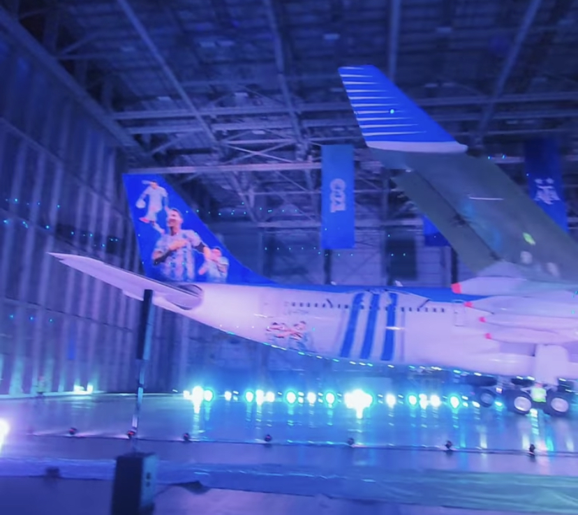 compagnie aeree Aerolineas Argentinas presenta l’aereo della squadra per la FIFA World Cup in Qatar Pubblicato da Italiavola il 7 ottobre 20227 ottobre 2022 Ieri la compagnia aerea Aerolineas Argentinas in una cerimonia di presentazione ha tolto i veli all’aereo dedicato alla squadra di calcio che in Qatar parteciperà alla FIFA World Cup 2022. L’immatricolazione dell’aereo e’ LV-FVH. Condividi: Fai clic per condividere su Facebook (Si apre in una nuova finestra) Facebook Fai clic qui per condividere su LinkedIn (Si apre in una nuova finestra) LinkedIn Fai clic qui per condividere su Reddit (Si apre in una nuova finestra) Reddit Fai clic qui per condividere su Pinterest (Si apre in una nuova finestra) Pinterest Fai clic qui per condividere su Tumblr (Si apre in una nuova finestra) Tumblr Fai clic per condividere su X (Si apre in una nuova finestra) X Mi piace Caricamento... Correlati