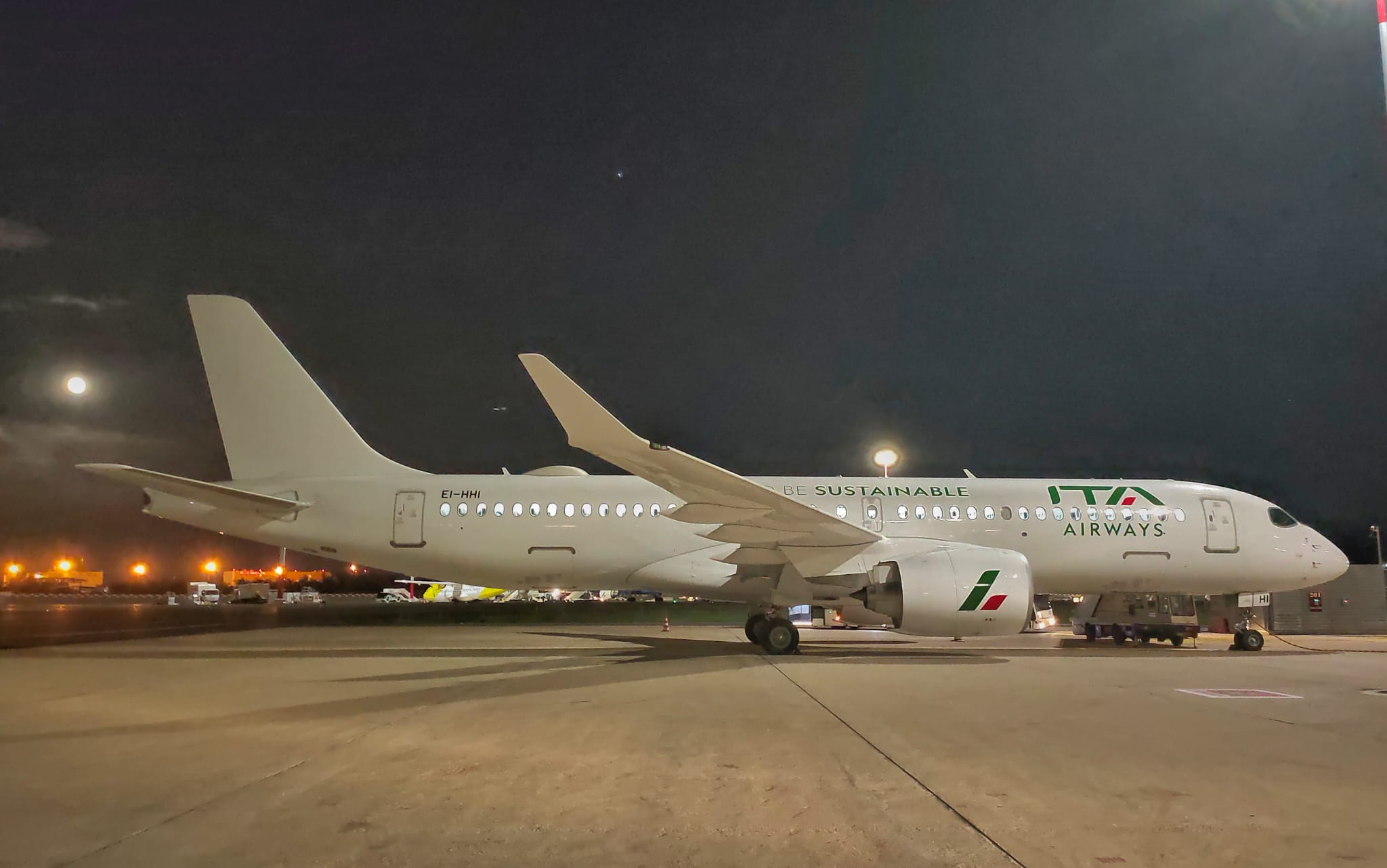 Ecco il primo Airbus 220/300 ITA Airways giunto nella serata di ieri a Roma Fiumicino da Napoli.