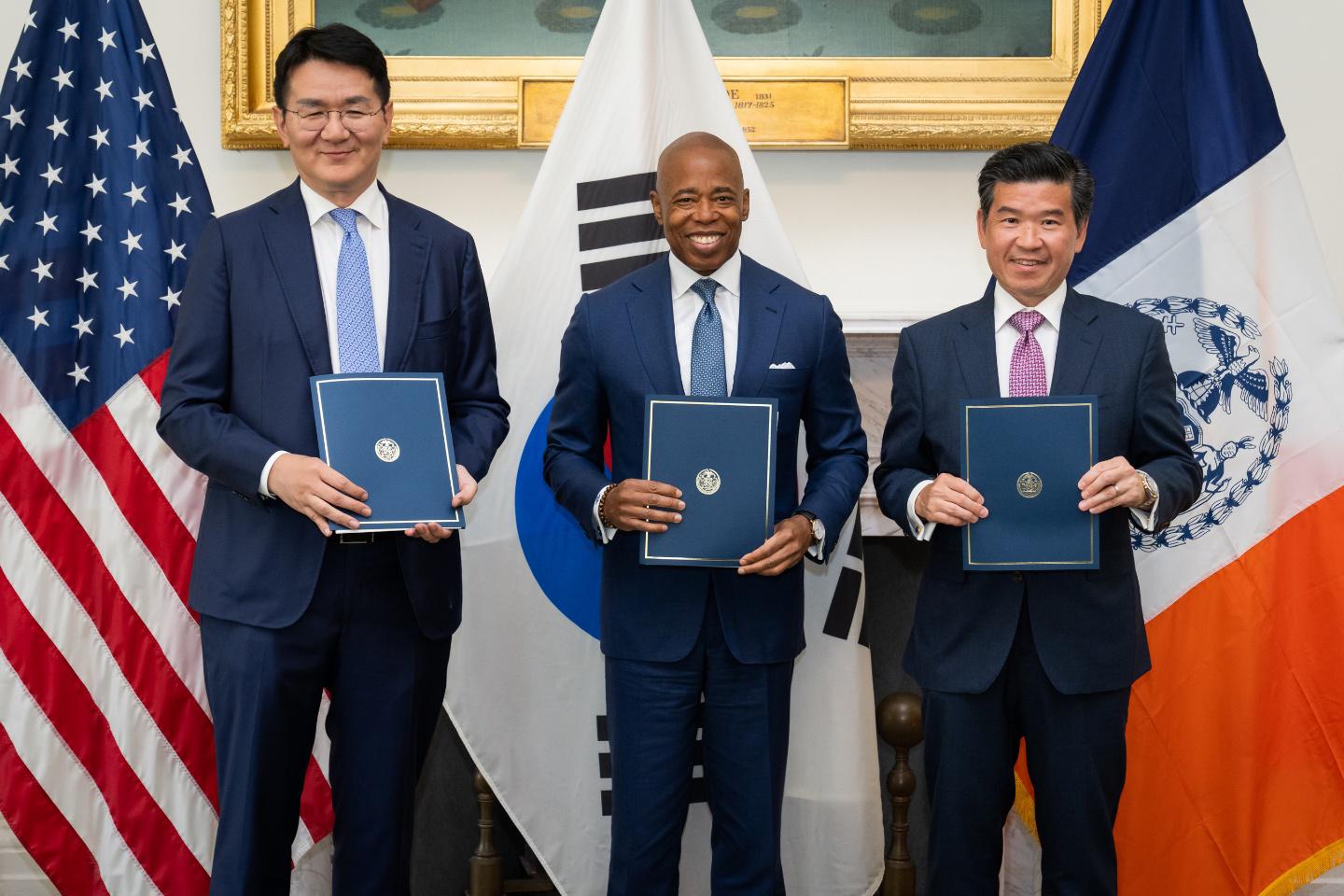 Oggi il sindaco di New York City Eric Adams, Presidente e CEO di Korean Air Walter Cho, e Presidente e CEO della American Chamber of Commerce in Korea (AMCHAM) James Kim, hanno annunciato la firma di un accordo per portare nuove iniziative e investimenti a New York City. La notizia è arrivata dopo un incontro tra i tre leader avvenuto oggi, martedì 11 ottobre, in Municipio. Questa nuova iniziativa porterà Korean Air ad aumentare il suo lavoro con Minority-Women-Owned Business Enterprises (“M/WBE”) e la creazione di programmi di stage presso gli uffici di Korean Air a Seoul e New York. Questo accordo funziona anche per creare opportunità per le M/WBE di fare affari in Corea con l’assistenza della Camera di Commercio americana in Corea.