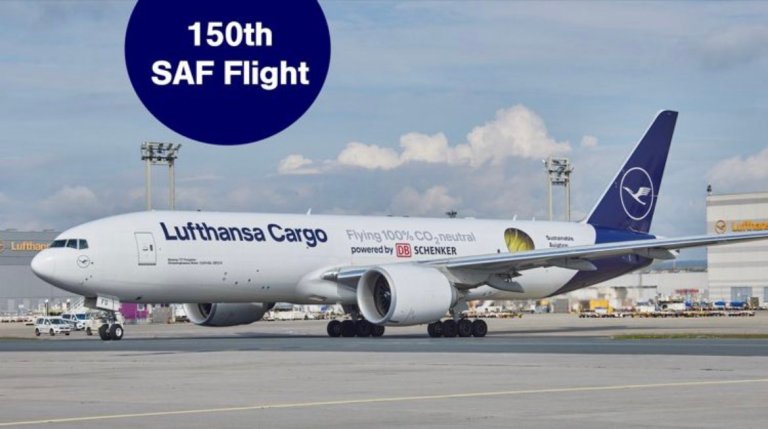 Lufthansa Cargo ha celebrato il 14 ottobre il suo 150° volo SAF (Sustainable Aviation Fuel) con il suo partner DB Schenker.