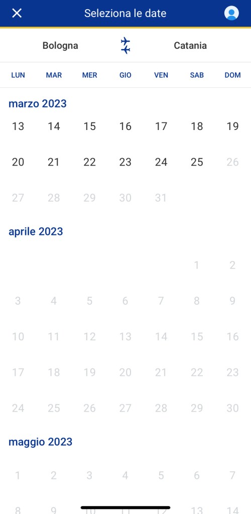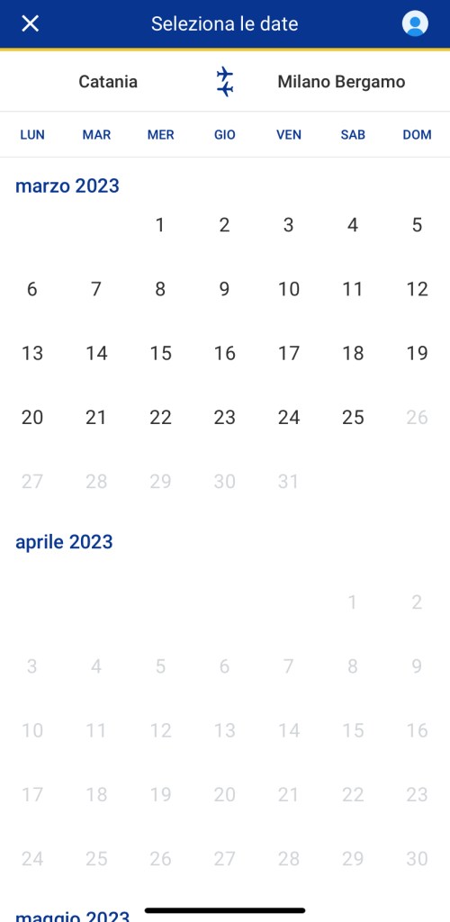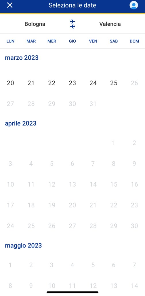 Invece riportiamo la differenza con altri scali dove dopo il 26 marzo i voli sono regolarmente acquistabili:
