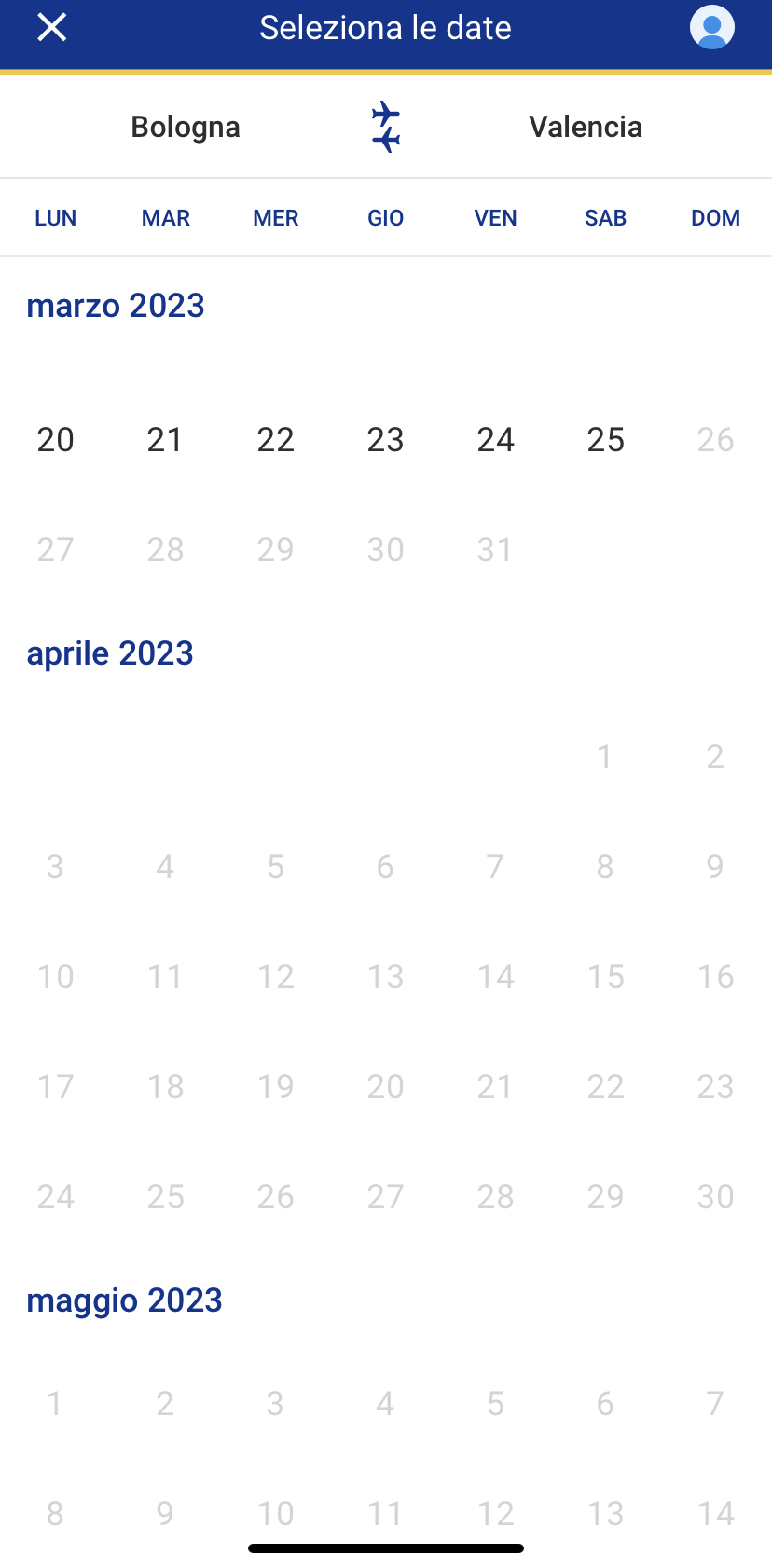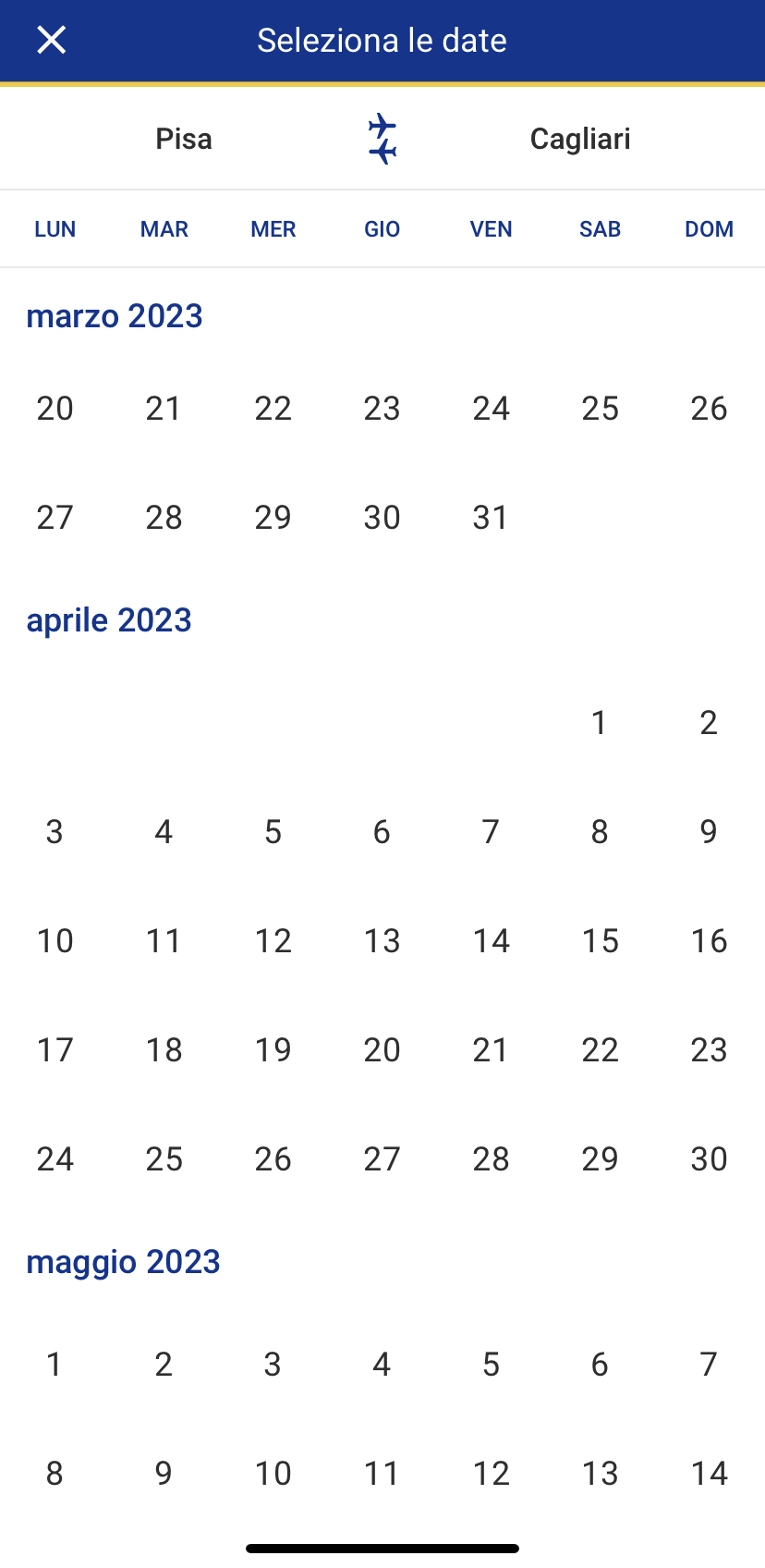 Invece riportiamo la differenza con altri scali dove dopo il 26 marzo i voli sono regolarmente acquistabili: