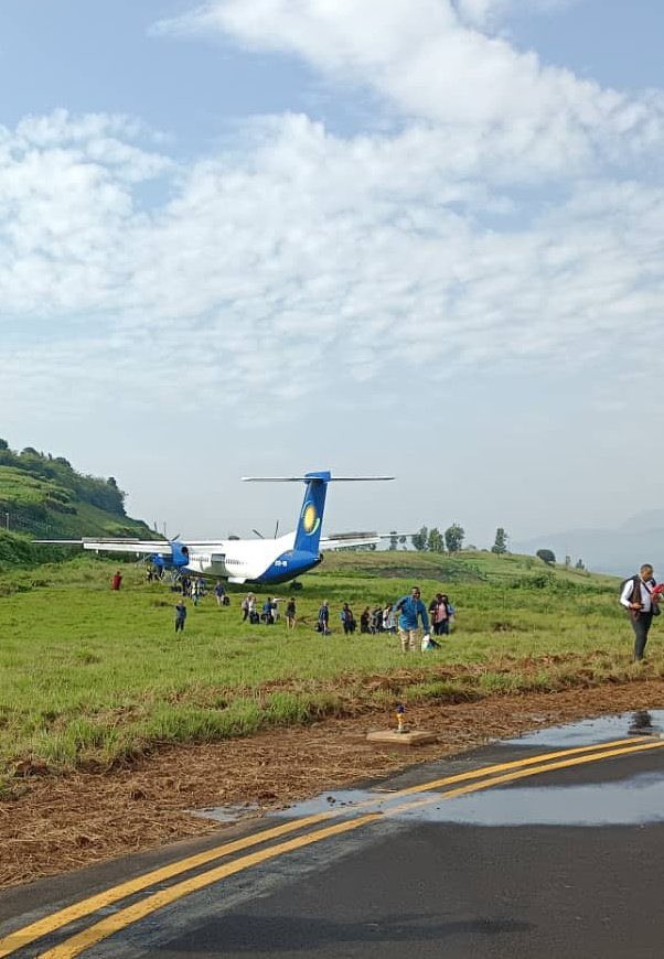 Un DHC-8-402 (Q400) RwandAir esce dalla pista durante l’atterraggio a Kamembe